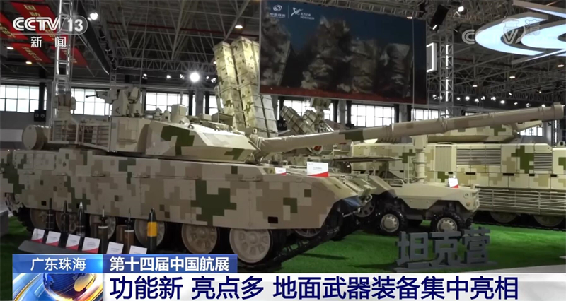 總臺央視記者 吳天白:我們可以看到,本屆航展兵器館裝備的排列不再是同類型裝備相鄰排列,履帶式的坦克就會搭配輪式無人車,而輪式裝甲車就會配備履帶式無人車進(jìn)行輔助,采用了一種“輪履結(jié)合”的組合形式。